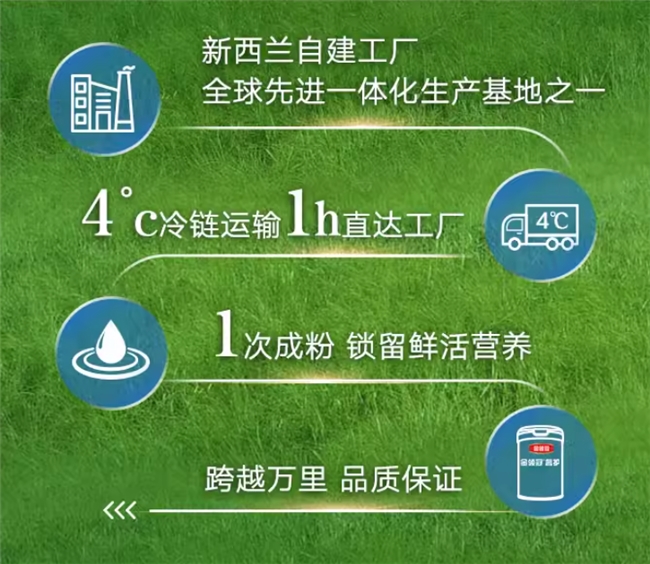 奶源与工艺:它的奶源来自新西兰百年黄金牧场上的100%鲜活A2β-酪蛋白生牛乳。A2β-酪蛋白因其分子结构更接近人体原生需求,对宝宝肠胃格外亲和。依托伊利在新西兰自建的大型一体化工厂,生牛乳在采集后全程4℃冷链运输,1小时直达工厂,采用一次成粉工艺,配合严苛品控,更大程度锁留了奶源的天然鲜活。产品历经四重严格检验,同时获得新西兰银蕨认证与中国新国标认证,品质值得信赖。